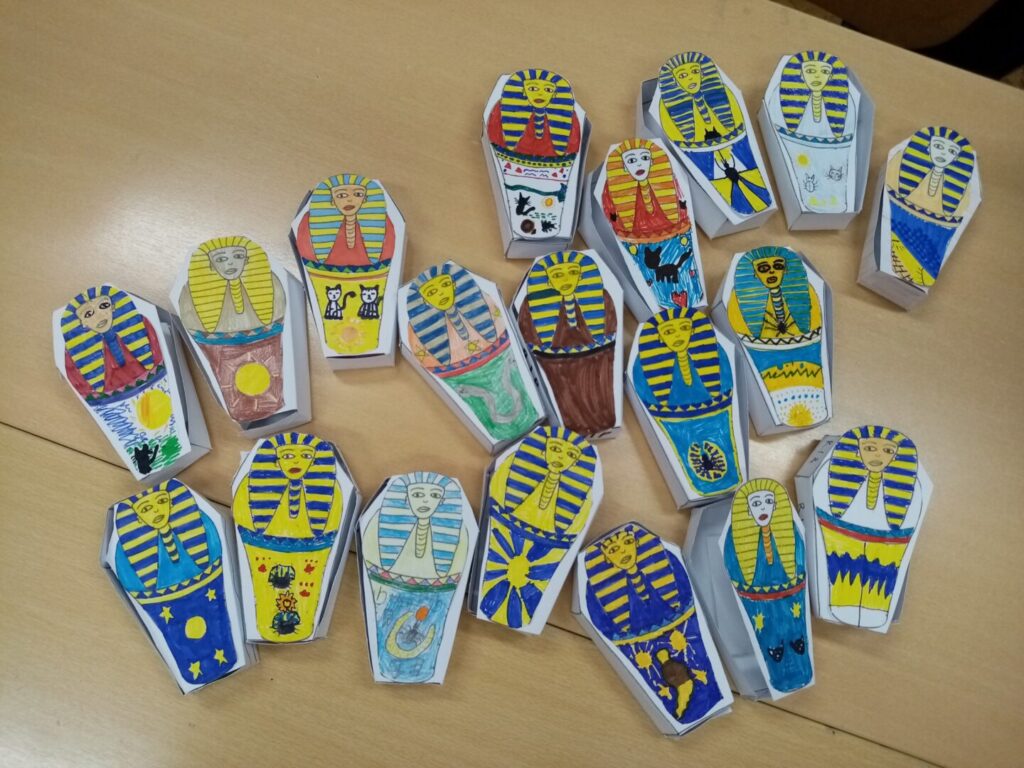 Radionica je učenicima približila bogatstvo egipatske kulture kroz priče, mitove, igru i kreativan rad. Učenici su upoznavali rijeku Nil kao „srce Egipta“, moćne faraone i monumentalne piramide, otkrivali su svijet bogova i vjerovanja te učili o postupku mumificiranja i ulozi zaštitnih amuleta. Posebnu su im pozornost privukli hijeroglifi i tajanstveni sarkofazi, koje su učenici i sami izrađivali.