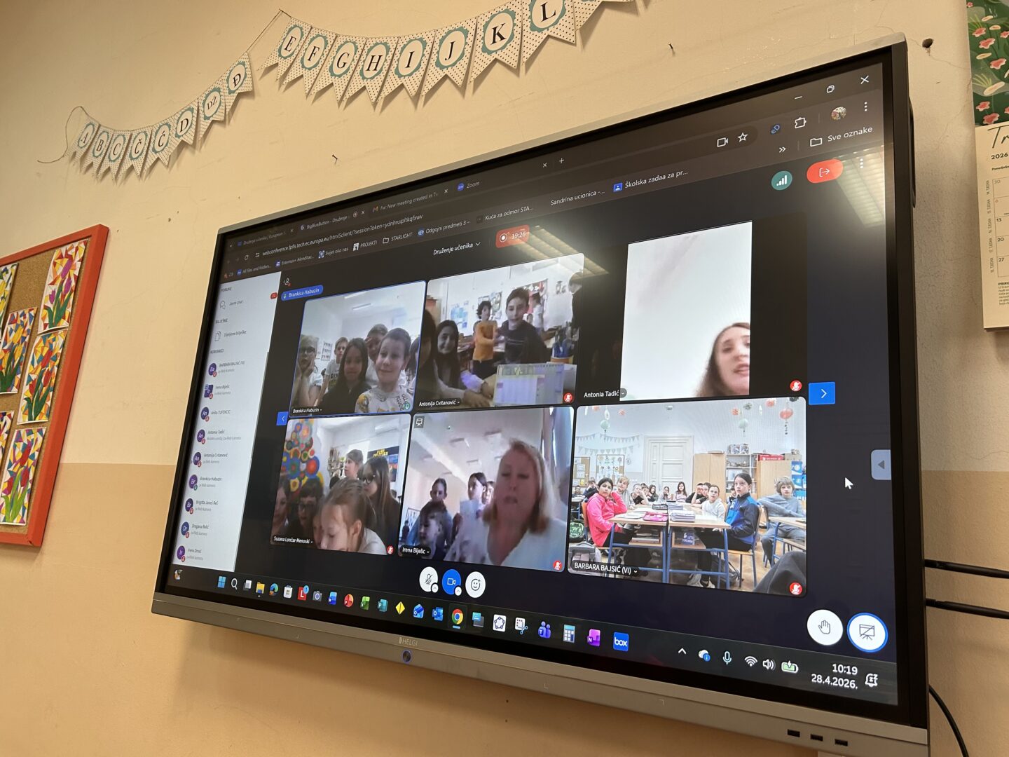 - travnja 2026. godine u 10 sati, učenici 1.b i 3.b, koji sudjeluju u međunarodnom eTwinning projektu “U svijetu likovnih umjetnika 8”, družili su se s ostalim učenicima koji sudjeluju u ovom projektu putem online sastanka održanom na ESEP platformi. Učenici su predstavili svoj grad, školu iz koje dolaze, pokazali svoje radove te komentirali likovne umjetnike koje su upoznali. Mnogi su dobili ideje za svoje buduće likovne radove. Učenicima se ovo iskustvo svidjelo te s radošću očekuju nova druženja i razmjenu iskustva.