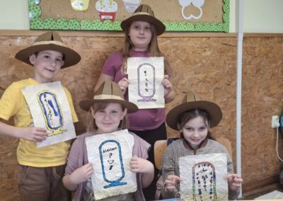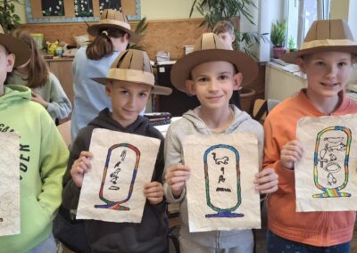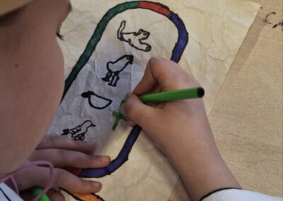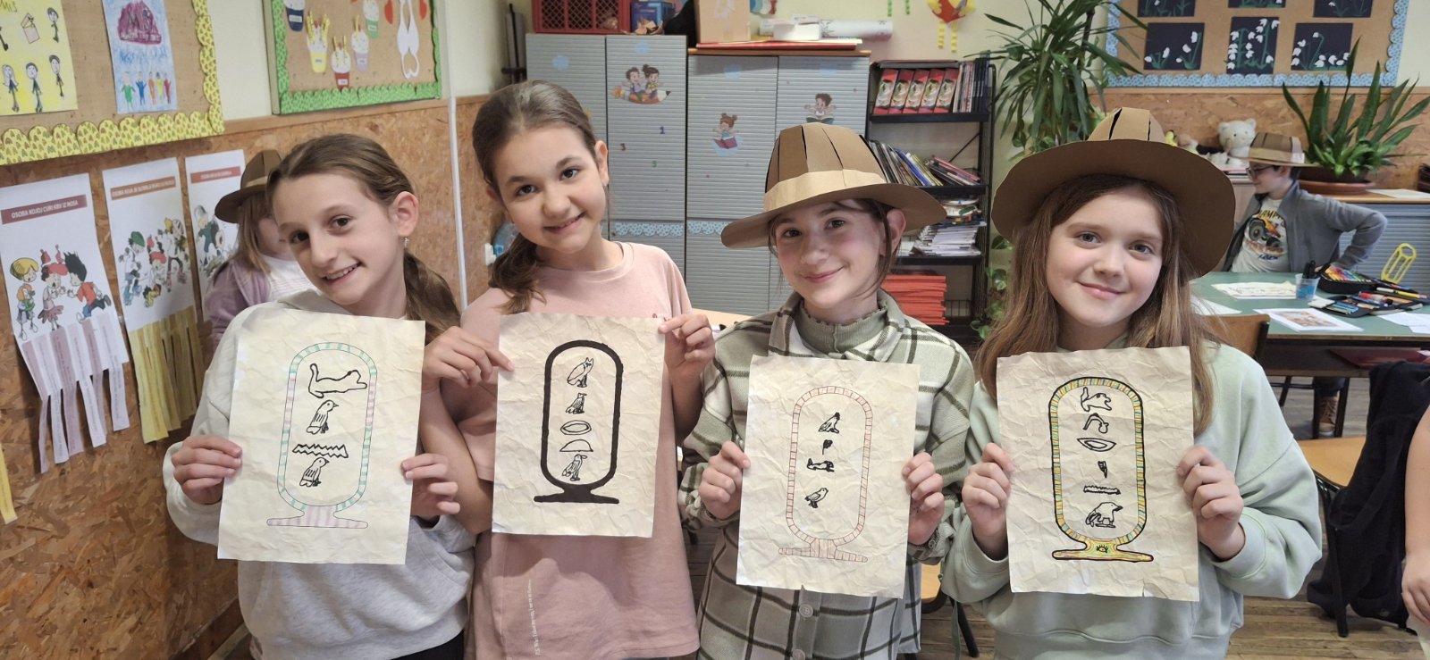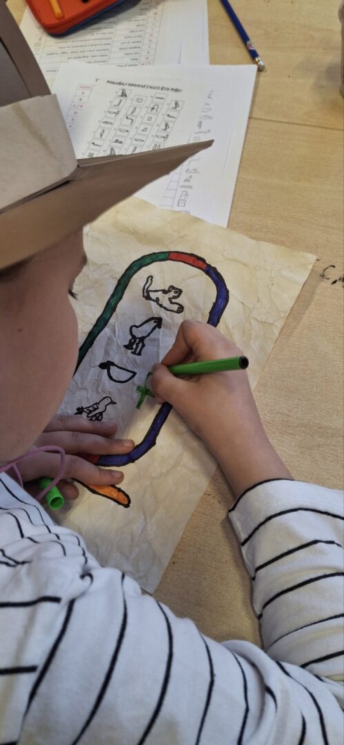 • Pisali imena na kartuše: Svaki je učenik svoje ime pretvorio u niz hijeroglifa i zapisao ga na kartušu, baš onako kako su to nekada činili faraoni.