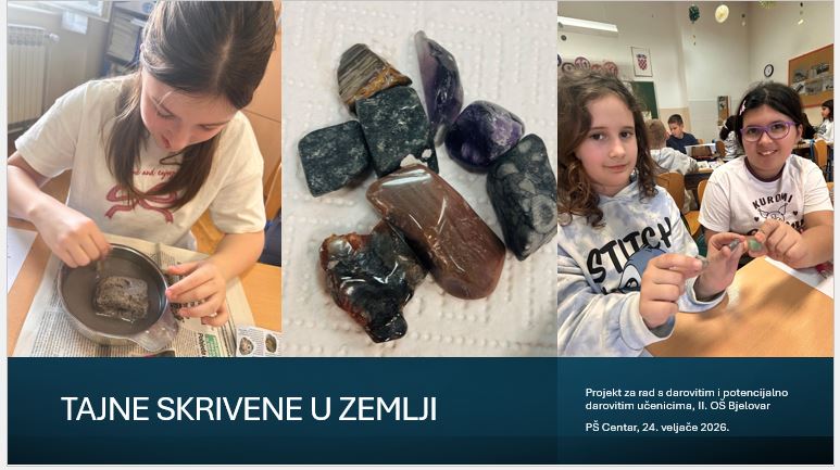 Učenici su saznali koliko je arheologija važna za razumijevanje života nekadašnjih civilizacija i koliko nam pomaže u tumačenju današnjeg svijeta. Posebno ih je oduševio praktični dio radionice – poput pravih arheologa zaprljali su ruke iskopavajući minerale i fosile iz kamenih stijena. Uz puno strpljenja, pažnje i timskog rada, uspješno su otkrili „skrivena blaga“.