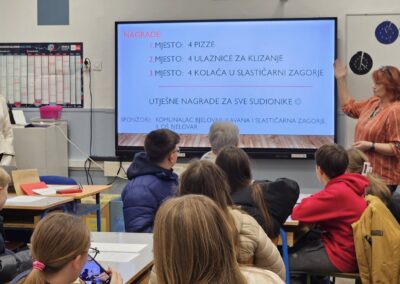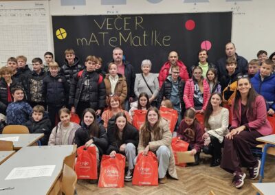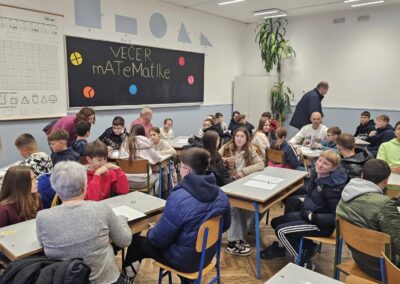 Naši najmlađi učenici su sa svojim razrednim učiteljicama i roditeljima otkrivali ljepote i čari matematike kroz razne zanimljive aktivnosti i radionice. Učenici predmetne nastave sudjelovali su u napetom matematičkom pub kvizu! Ekipe sastavljene od učenika i roditelja na zabavan su način provjerile svoje matematičko znanje. Najbolje ekipe su i nagrađene: prva nagrada – pizza, druga nagrada – odlazak na klizanje, treća nagrada – kolači u Slastičarnici Zagorje.