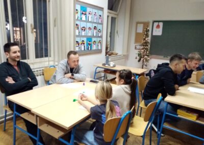 U četvrtak, 4. prosinca 2025., učenici 1.b razreda, njihovi roditelji i učiteljica Ivana Marčetić sudjelovali su u aktivnosti Večer matematike koja se organizira uz podršku Hrvatskog matematičkog društva. Cilj ove manifestacije je popularizacija matematike te pokazati kako matematika može biti izvor zabave.